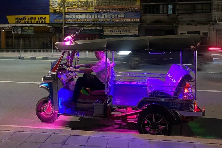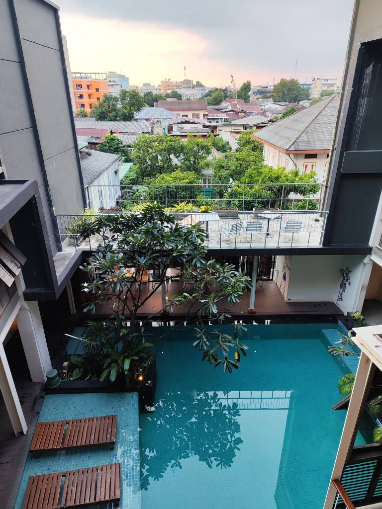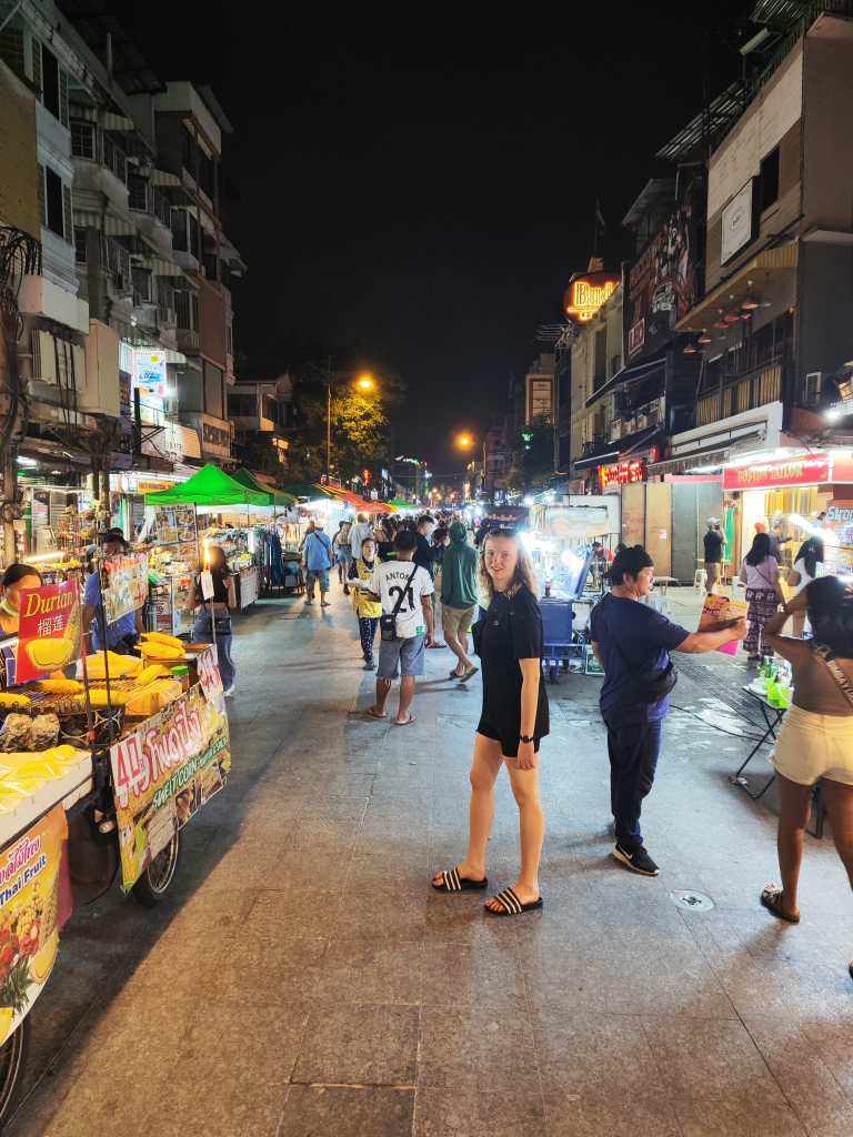 Nach 10:50h Reisezeit dann ENDLICH: Ankunft in Bangkok. Wo wir beide direkt erstmal von der Hitze erschlagen wurden. Nach Passkontrolle und stressigem Geldabheben für eine 20-minütige Taxifahrt kamen wir dann beim Hotel „Nanda“ an. Was die Bilder im Internet versprachen, hielt die Unterkunft auch. Tolle Lage im Zentrum, wunderschöner Pool, großes und gemütliches Zimmer. Wir fühlten uns direkt beide sehr wohl. Allerdings erstmal: gute zweieinhalb Stunden komatöser Mittagsschlaf, bevor es abends zur berühmten Kao-San-Road ging, wo wir direkt mal die vollen 100% wildes und lautes Bangkok erlebten. Erstes Pad-Thai, erste Mango, erstes Chang-Bier. Flynn kannte es ja bereits von seiner Kursfahrt 2015, aber auch Neele war schnell gefesselt von den völlig neuen und aufregenden Eindrücken. Weitere Erlebnisse: Mehrere „7-Eleven-Käufe“; Fuß-Massagen; penetrante Touristen-Fallen für Lachgas, Ping-Pong-Shows (googelt lieber selbst), Cocktail-Buckets und exotische Insekten. Und viele erste Male…